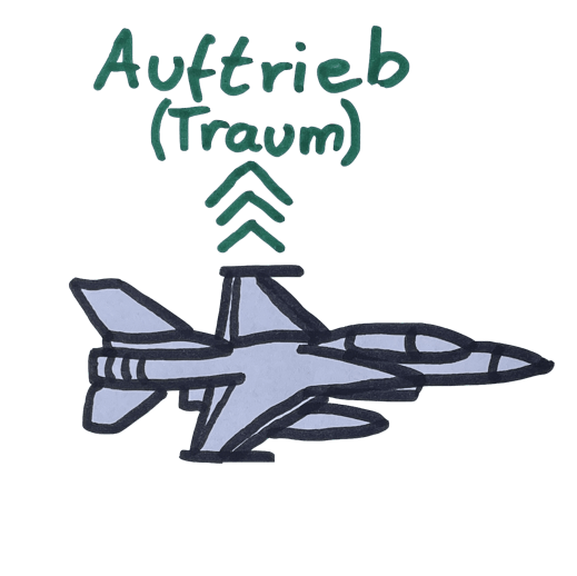 Ein Gegenstand (hier ein Flugzeug) soll fliegen. Es hat ein Eigengewicht und von Natur aus keine Bestrebungen, die Erdoberfläche zu verlassen. Die nach vorne gerichtete Kraft ist der Schlüssel. Durch den Schub wird die Tragfläche durch die Luft bewegt und erzeugt Auftrieb. Durch den Auftrieb wird das Gewicht überwunden und das Modell fliegt. Der zeitgleich erzeugte induzierte Luftwiderstand und der konstruktive Luftwiderstand bremsen das Modell wieder ab und der Schub muss diesen Faktor nun ebenfalls noch kompensieren.