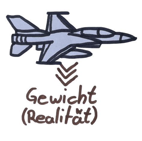 Das Gewicht ist dabei der Gegenspieler des Auftrieb. Es muss durch diesen überwunden werden, damit das Flugzeug überhaupt fliegt.